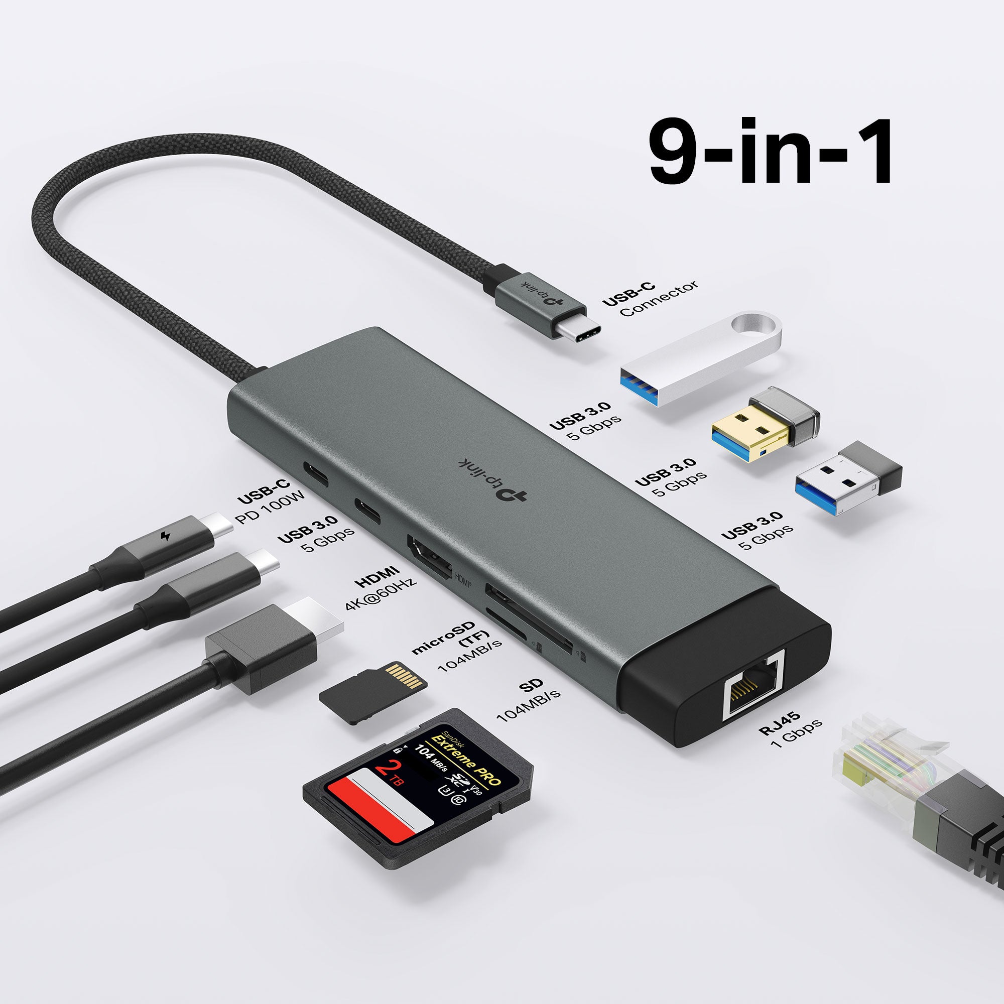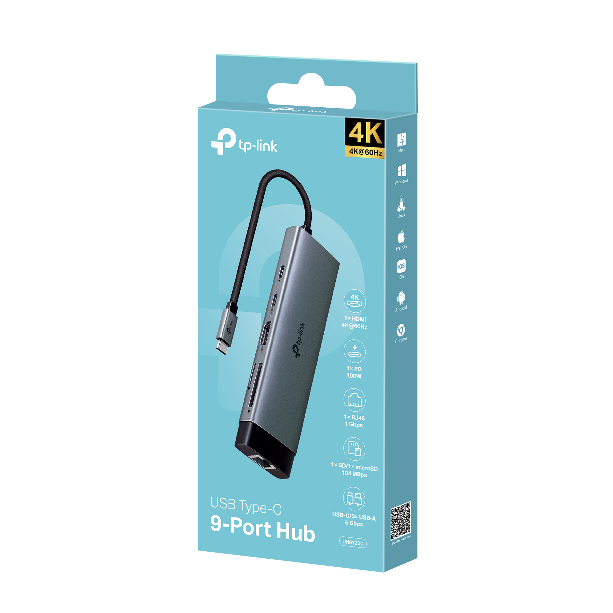 De TP-Link UH9120C 9-in-1 USB-C hub biedt 4K HDMI, gigabit ethernet, snelladen en snelle data-overdracht in één compacte oplossing.