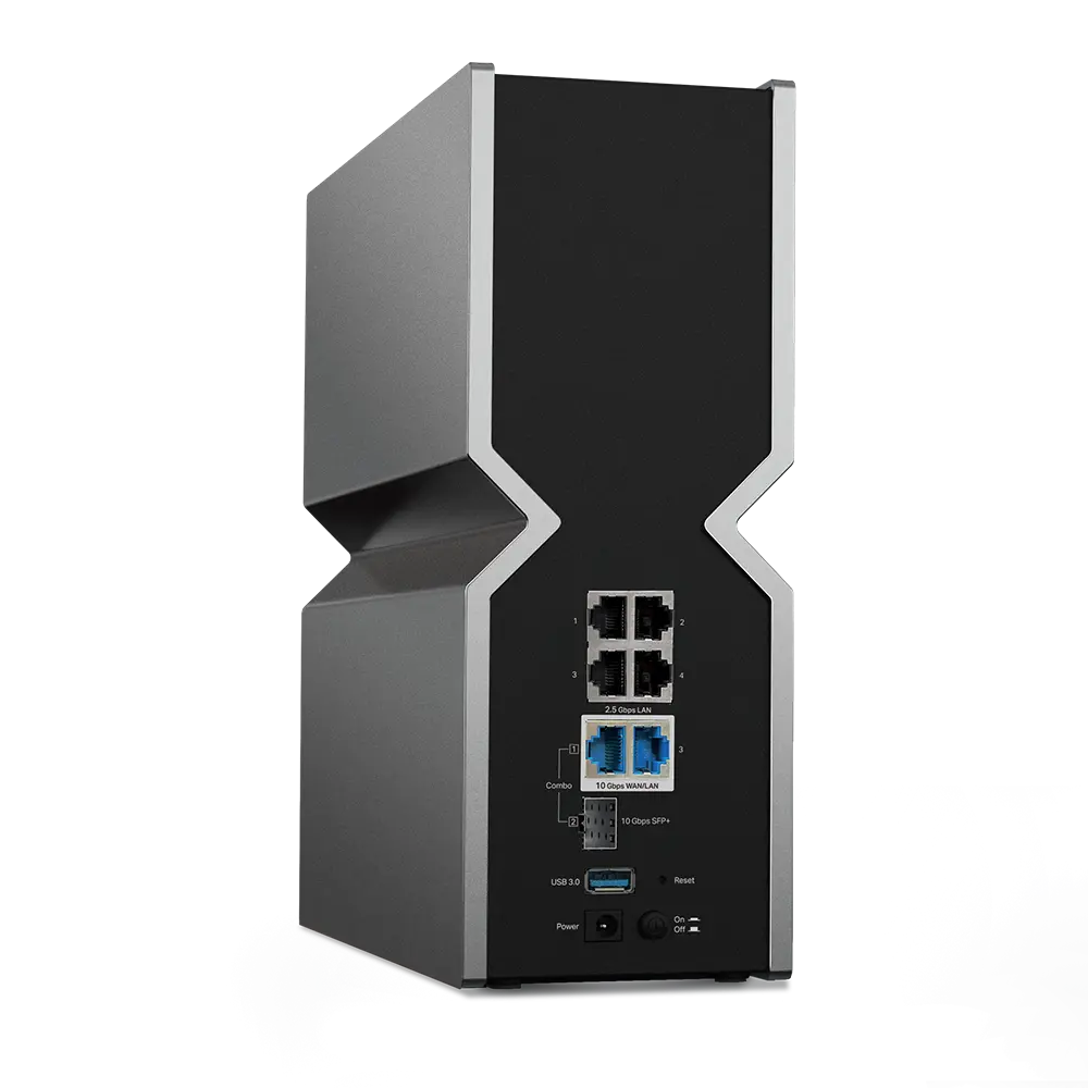 Archer BE800 is uitgerust met twee 10G WAN/LAN-poorten – één RJ45-poort en één combinatiepoort voor SFP+ glasvezel/RJ45 ethernet — en biedt flexibele ondersteuning voor glasvezel- en koperverbindingen.§ Door de vier extra 2.5G-poorten en één USB 3.0-poort is het een ideale oplossing om je thuisnetwerk toekomstbestendig te maken.