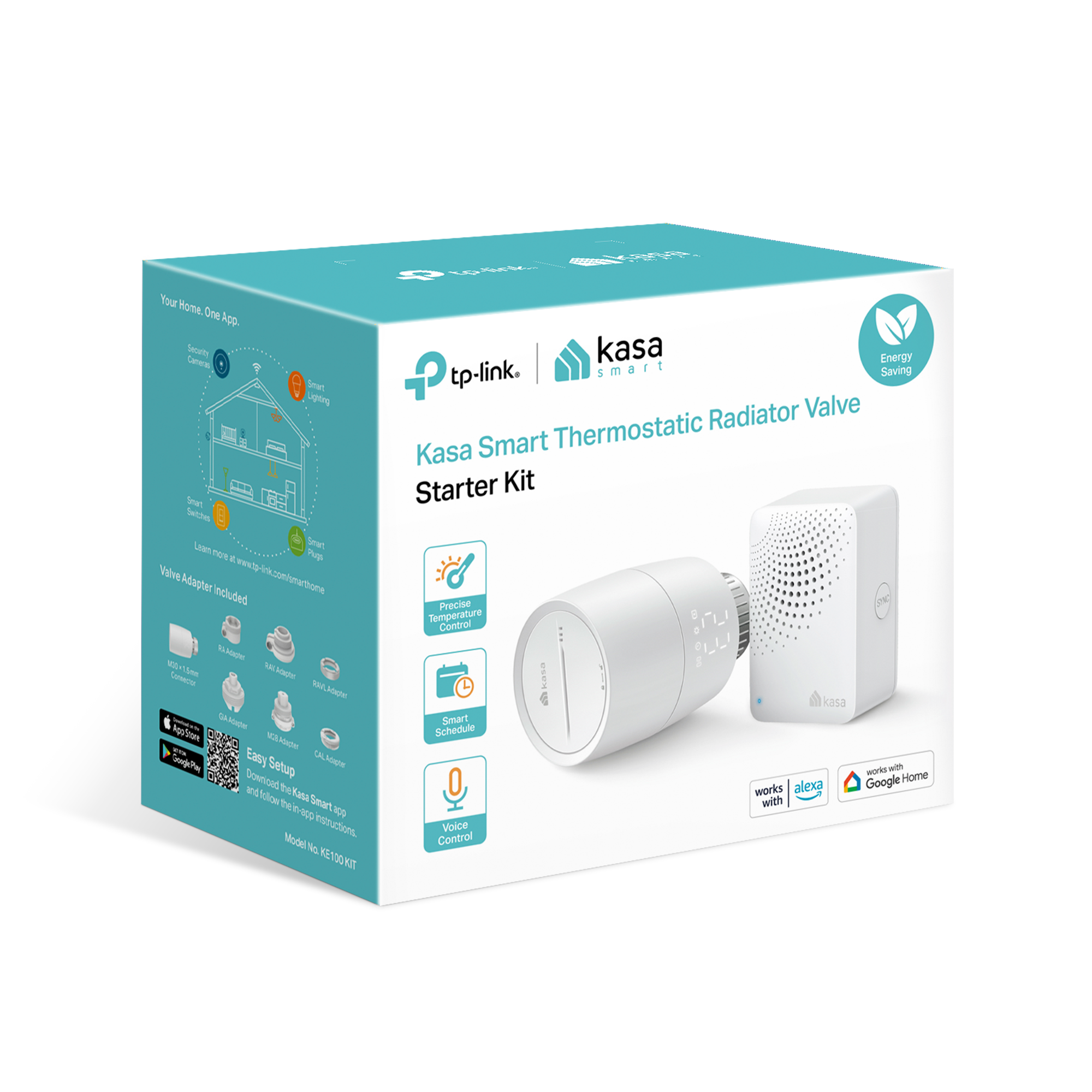 Ontdek de Slimme Radiatorknop starterspakket KE100 van Kasa en regel de temperatuur binnenshuis van een afstand met de Kasa app.