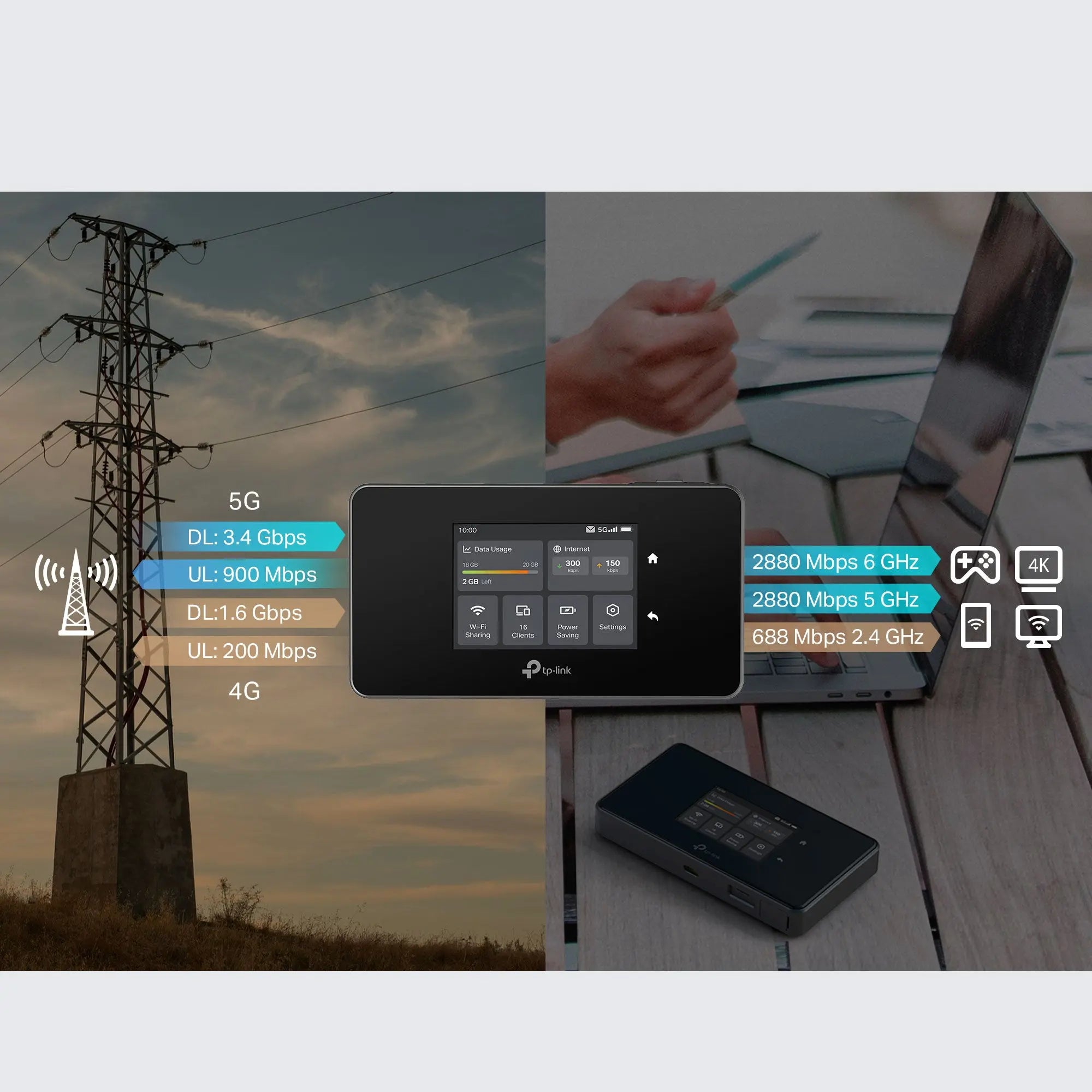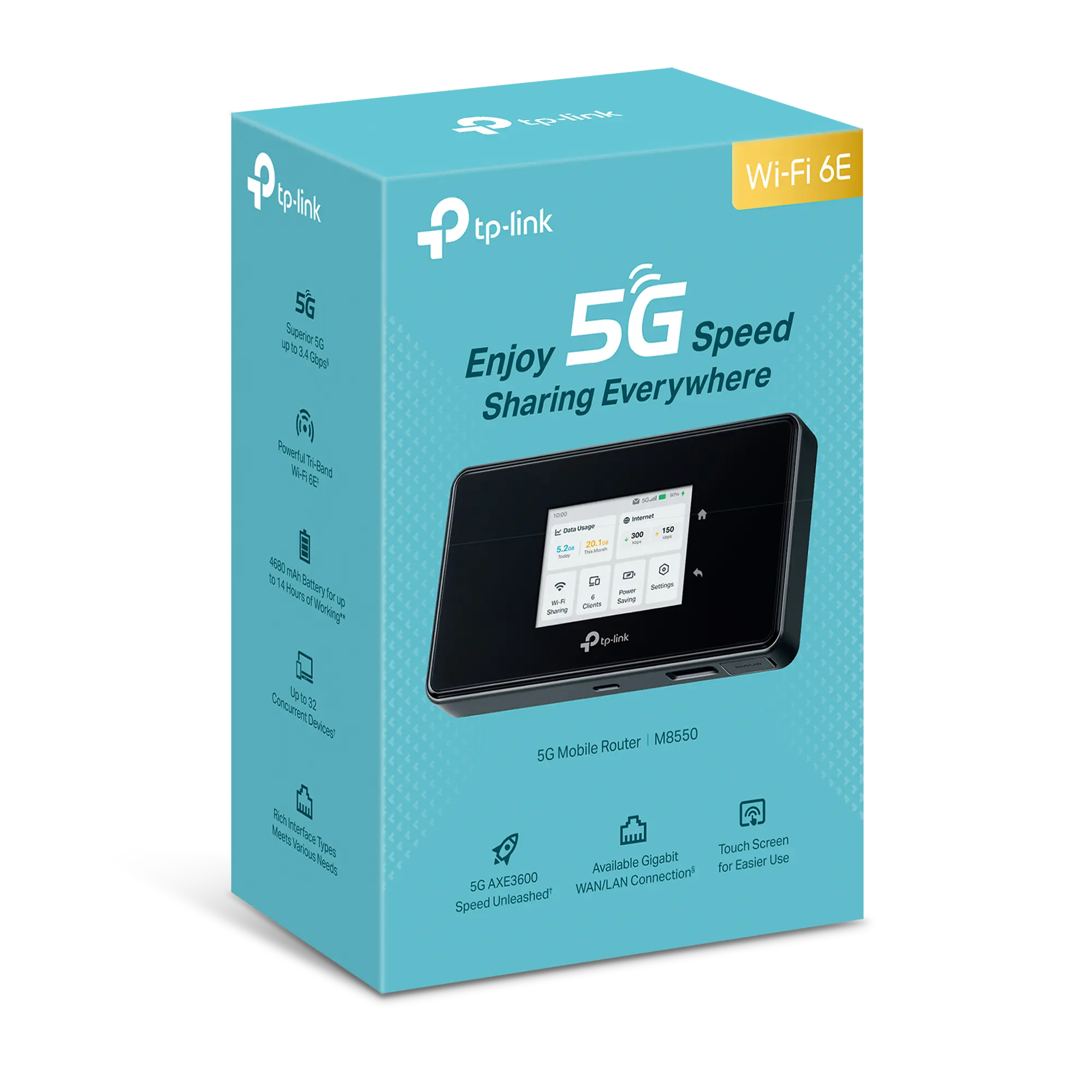 De MiFi Router M8550 met WiFi 6E is jouw ideale reisgenoot zodat je altijd veilig online kan zijn.